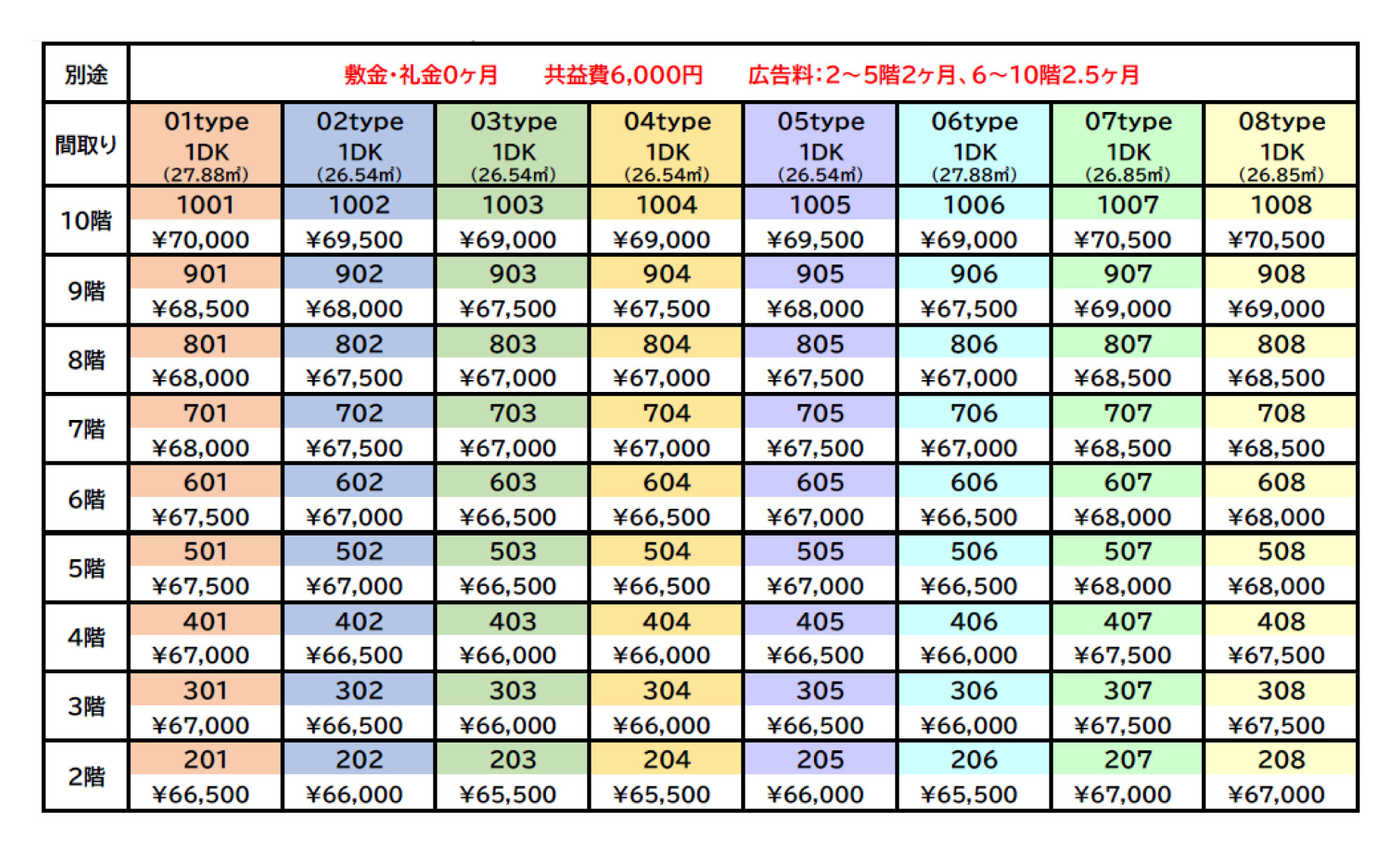 | 専有面積 | 26.54~27.88㎡ |