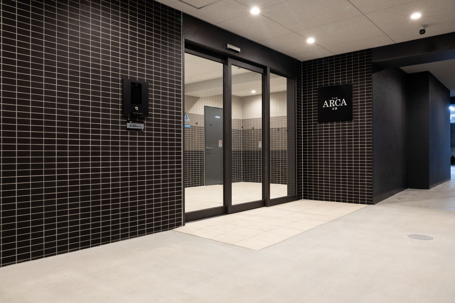 マンション住人が共用玄関ドアを解錠操作、または退出後に自動的に施錠されます。